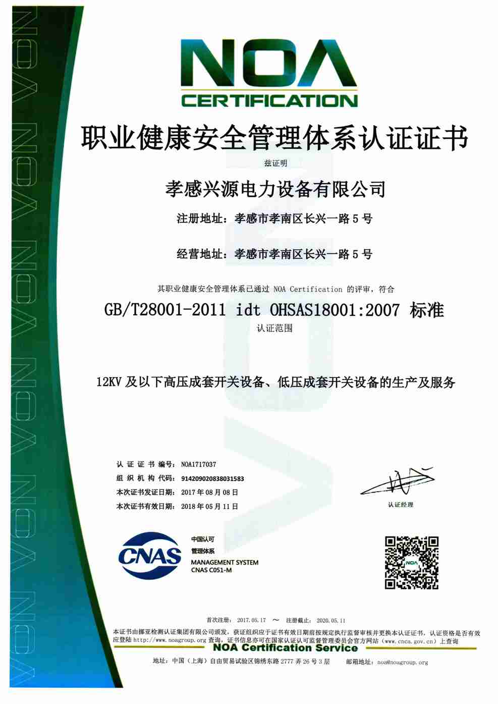 • 職業健康管理體系證書